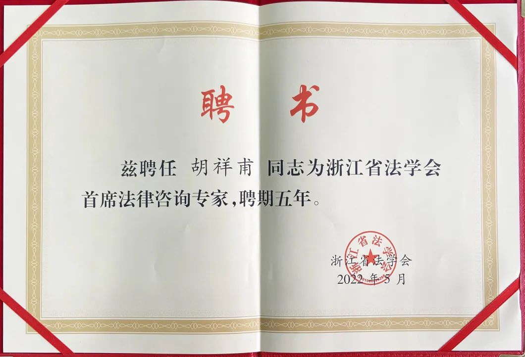 近日,根据浙江省委政法委、浙江省法学会《关于推行首席法律咨询专家制度的实施意见》,浙江省法学会对拟聘请担任首席法律咨询专家人选进行严格审核,并于2022年5月7日至5月12日向社会公示完毕。浙江金道律师事务所首席合伙人胡祥甫律师、兼职律师封利强被聘任为首批浙江省法学会首席法律咨询专家