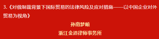 《对俄制裁背景下国际贸易的法律风险及应对措施——以中国企业对外贸易为视角》——孙南梦頔 孙南梦頔 金道所律师