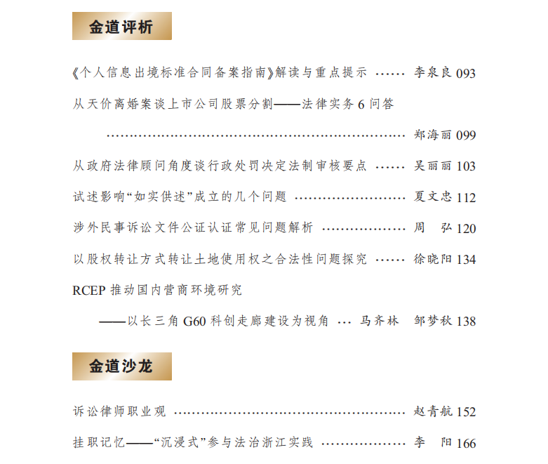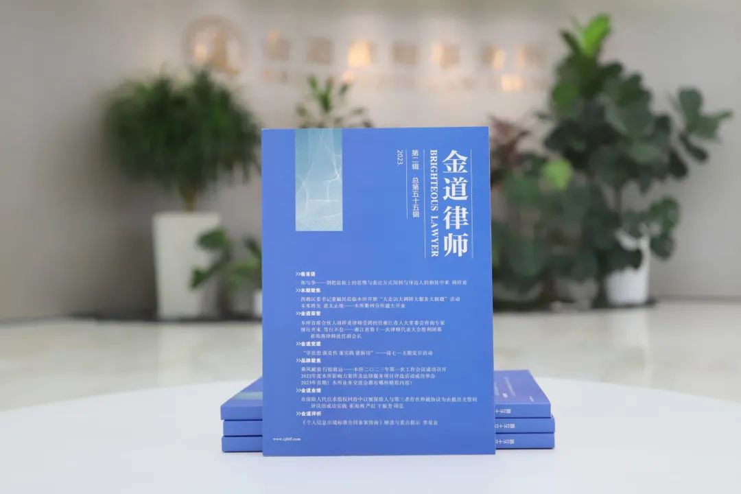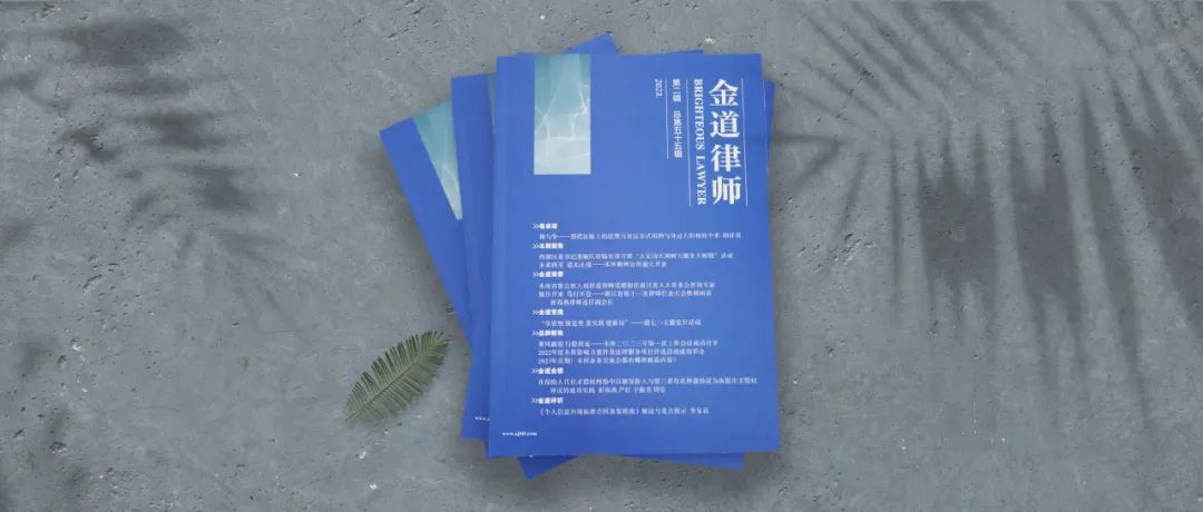 《金道律师》立刊之初,便希望树立金道律师专业之形象,所以我们鼓励每一位金道律师积极钻研,将所思、所想、所悟、所感,无论是理论研究,还是司法实践,抑或是执业心得,以有形的方式记载下来。本期《金道律师》我们选取了七篇涉及多个不同执业领域的好文,与两篇心得感悟,与各位读者分享。