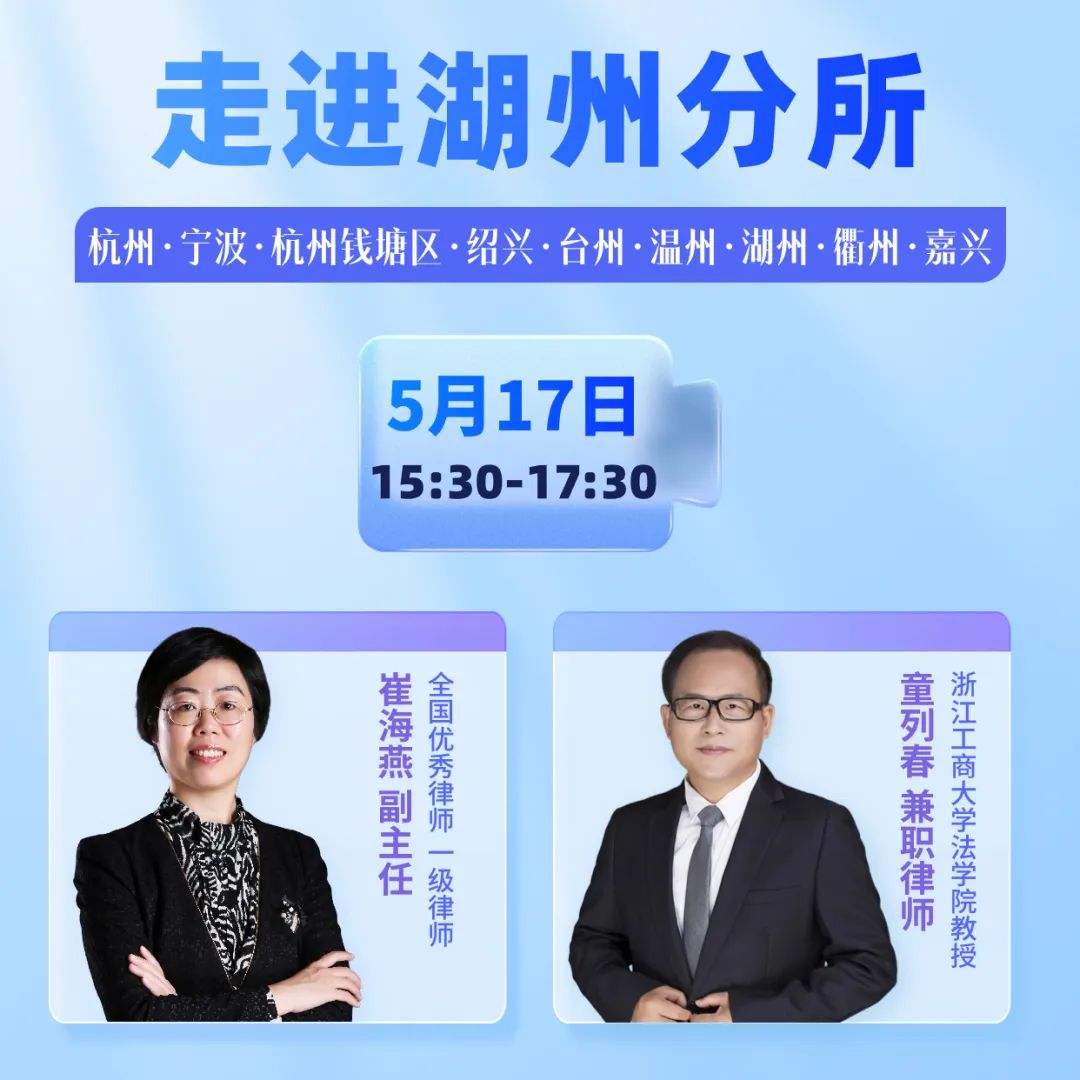 2024年5月17日下午,金道总所与湖州分所举办工作交流会暨专业分享会。金道所首席合伙人胡祥甫,副主任崔海燕,咨询与监督委员会副主任胡东迁,高级合伙人、人事管理与考评工作委员会副主任王楠,初级合伙人、道德纪律与团队建设委员会委员饶译晨,兼职律师、浙江工商大学法学院教授童列春,分所建设与对外合作委员会委员史庭来,绍兴分所主任马海等一行莅临金道湖州分所指导工作。金道湖州分所主任朱靓、执行主任沈丹等一同参加接待并举行了会谈。
