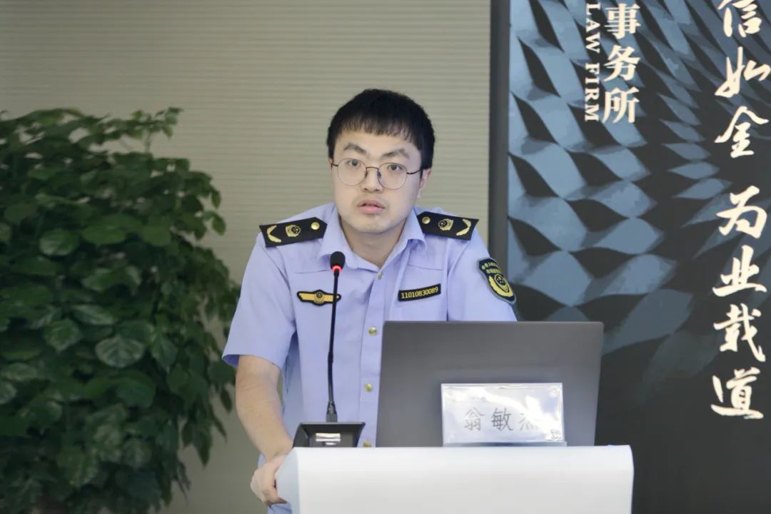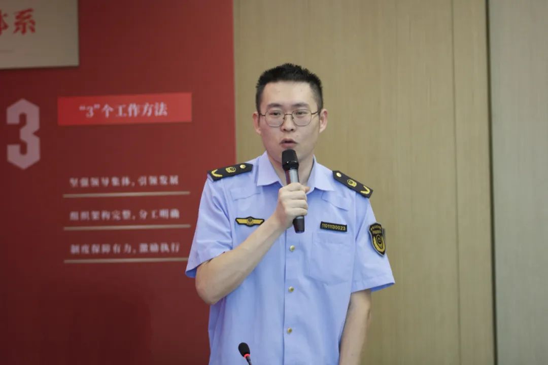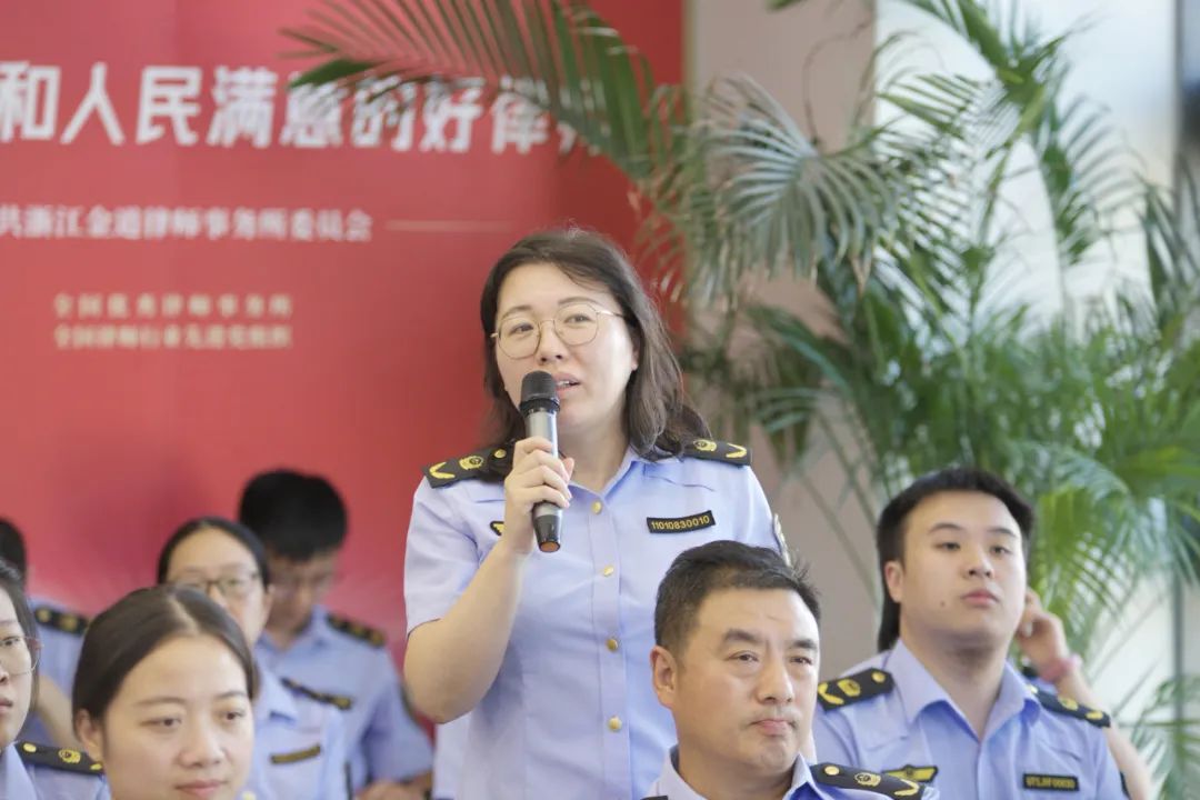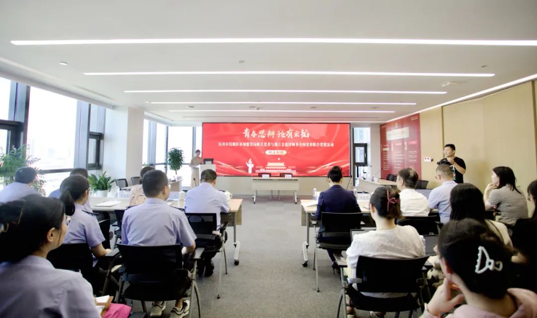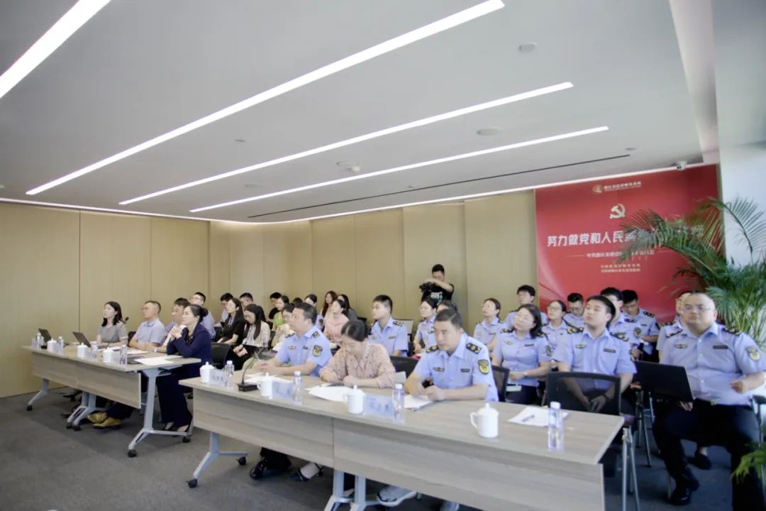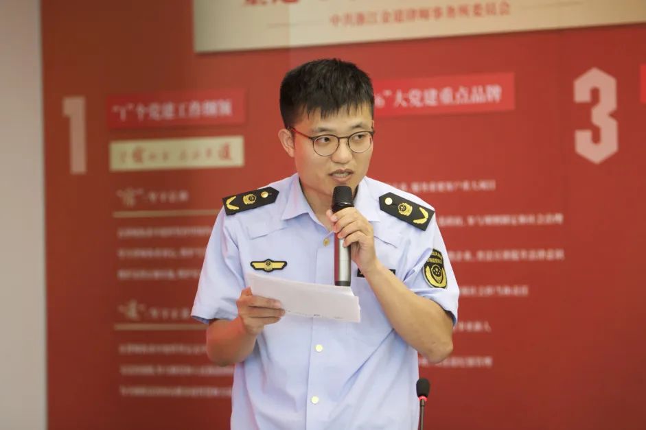 在党建经验交流环节,徐杨超律师就金道党委“163党建工作体系”建设,践行“党建与所建并举,党建促所建”为重点,就金道所的党建工作进行了介绍。钱燕锋副局长就钱塘区市场监管局以“红领钱潮·双建争先”为抓手,不断深化改革、强化监管,擦亮“市监红 竞钱潮”党建品牌等党建经验进行了精彩分享。
