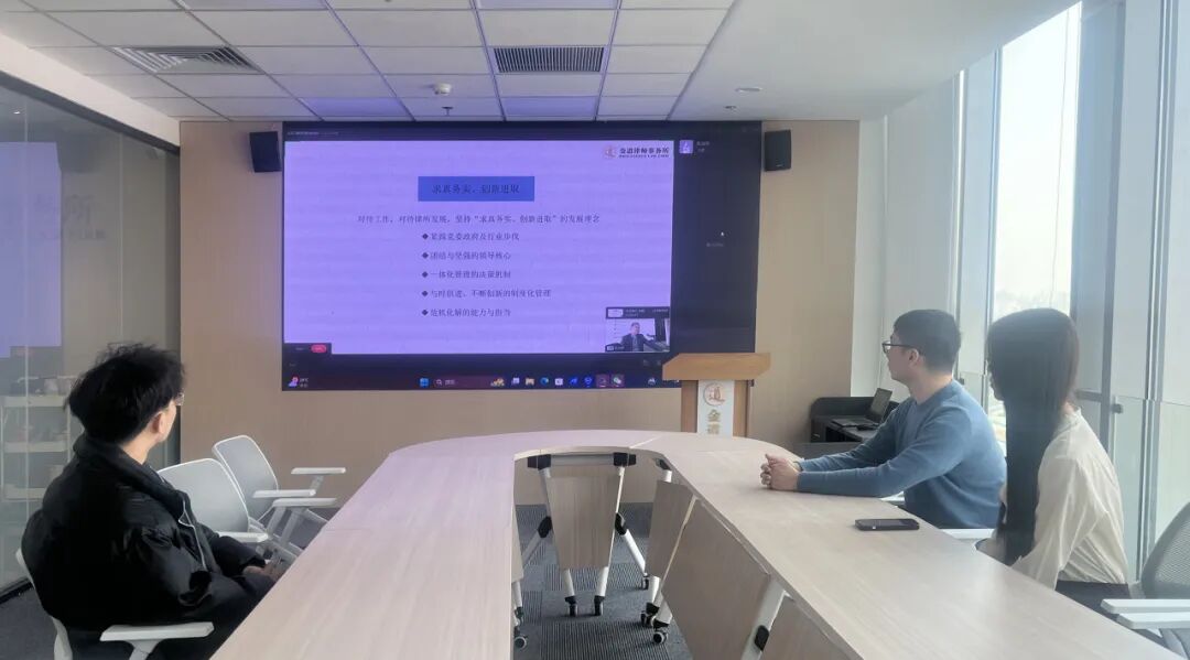 为主题,围绕律所的发展历程、文化理念、职业发展、考核晋升、执业规范和工作指南等方面展开介绍。本次培训会采取线上线下相结合的方式,总分所共计50余人参加。
