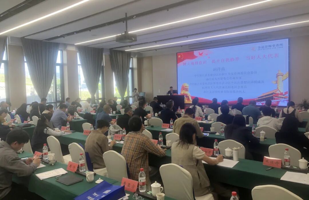 胡祥甫律师受邀为海宁市人大代表履职能力提升培训班作主题授课 为全面深化全过程人民民主基层单元建设,进一步提高代表履职能力水平,海宁市人大代表履职能力提升培训班于2025年4月15日在建德航空小镇开班。金道所首席合伙人胡祥甫受邀为培训班作《树立规则意识 提升自我修养 当好人大代表》主题授课。