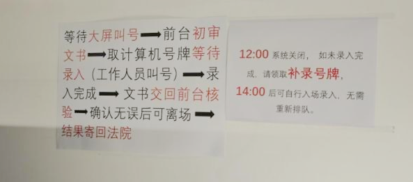到达查档地点后,入口处工作人员会检查调查令及律师证件,查验无误完成取号后至二楼排队等待大屏叫号。叫到号后先至左侧人工台初审材料,审核无误后,工作人员会给我们一个计算机号牌(现场配备十几台电脑,届时需要律师将自己要查询的信息按要求输入调证系统,使用电脑也要排队),然后继续排队等待。
