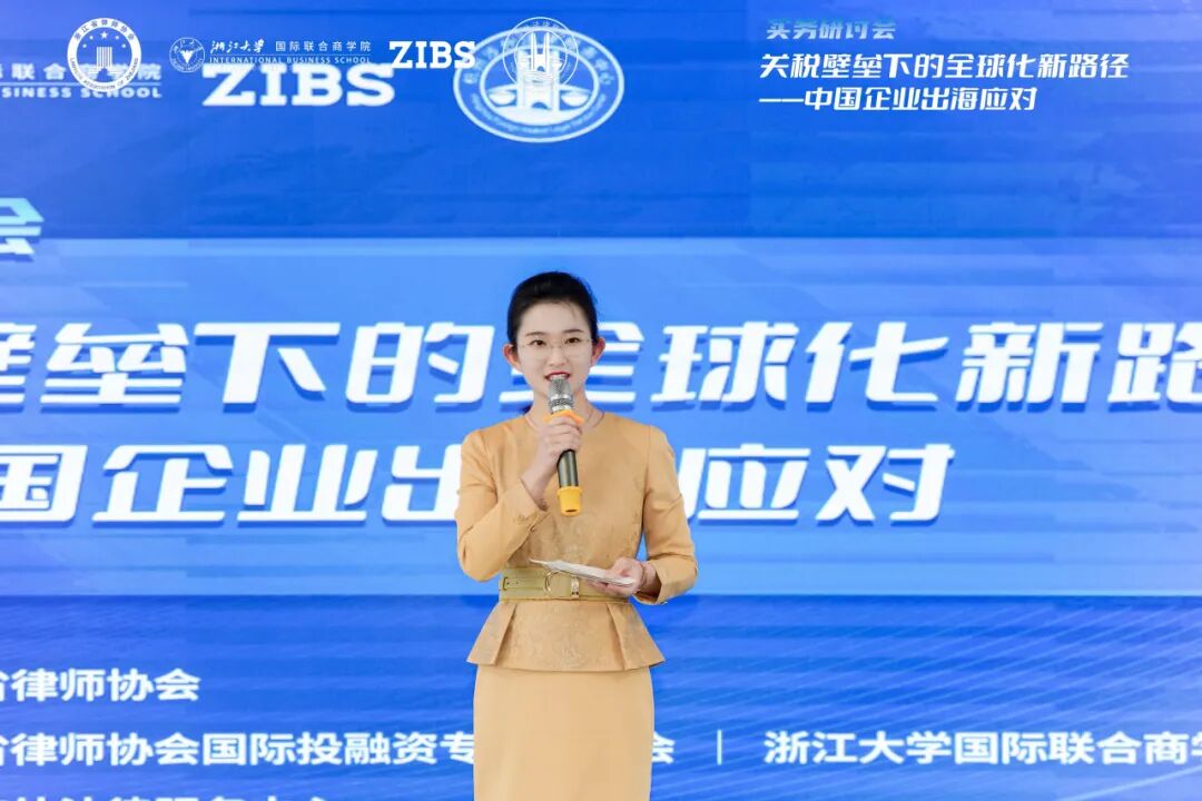孙南梦頔律师担任“关税壁垒下的全球化新路径——中国企业出海应对”实务研讨会主持人 2025年4月26日,由浙江省律师协会指导、省律师协会国际投融资专业委员会和浙江大学国际联合商学院(ZIBS)主办、杭州涉外法律服务中心协办的“关税壁垒下的全球化新路径——中国企业出海应对”实务研讨会在杭州顺利召开。浙江省律师协会副秘书长曹悦、浙江大学国际联合商学院高管教育中心行政主任徐盛丹出席会议并致辞。浙江省律师协会国际投融资专业委员会委员、院校代表、企业界人士及非委员律师近200人参加会议。本次会议由浙江省律协国际投融资专业委员会委员、金道所孙南梦頔律师主持。