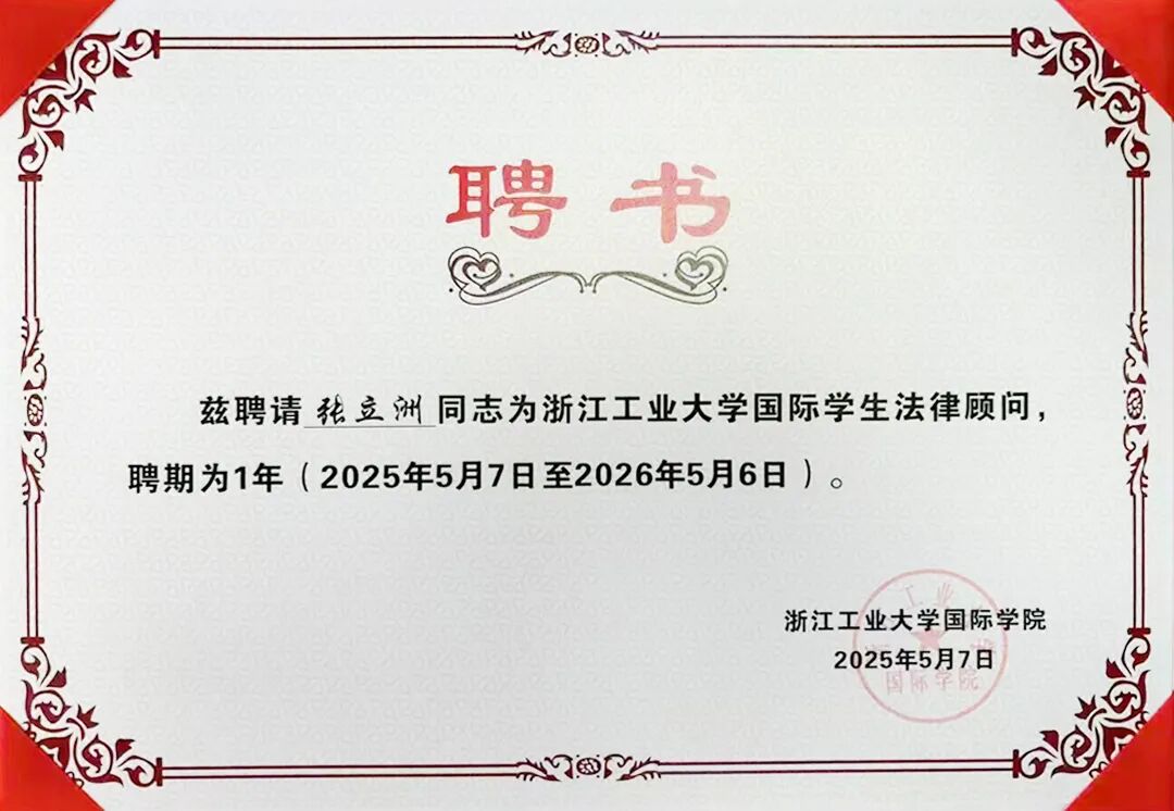张立洲律师受聘担任浙江工业大学国际学生法律顾问