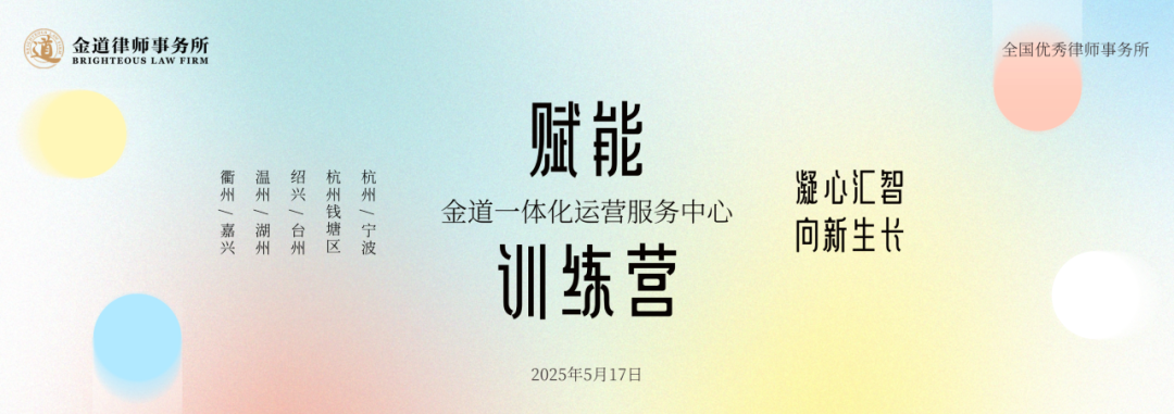 金道所的发展也离不开每一位运营人员的付出,近年来律所强调运营赋能律师的理念,希望运营中心能够真正实现总分所一体化运作,赋能律师。本次赋能训练营已经圆满结束,但同时是一个良好的开端,是金道运营团队迈上新台阶、开启新征程的第一步。今后全体运营中心人员将以本次训练营为契机,不断提升综合管理和服务能力,为金道的高质量发展做出运营人的贡献。