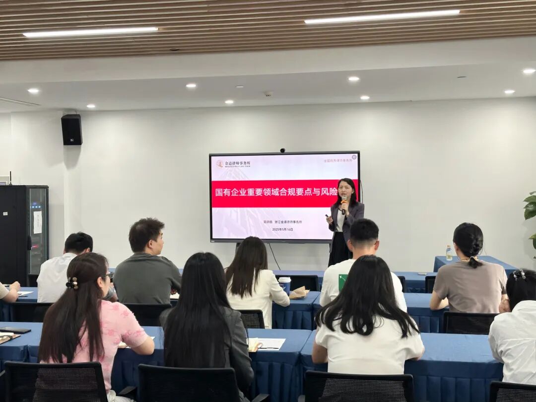 2025年5月16日,金道所吴丽丽律师应邀为杭州市停车产业股份有限公司讲授《国企重点领域合规及风险防范》,该公司各部门负责人及工作人员参加学习。吴律师结合已经完成的该公司合规管理体系建设工作,对“三张清单”和“重点领域合规指南”进行了说明,重点讲解了招标采购、对外投资两个领域的合规管理工作。