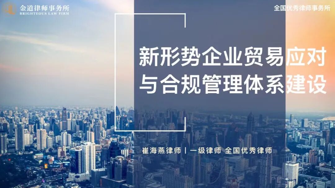 浙江省外经贸法律服务律师团团长、金道所副主任崔海燕受邀参加交流会,并作《新形势企业贸易应对与合规管理体系建设》主题分享。崔海燕律师紧扣新形势下企业贸易发展痛点,凭借27年深耕国际贸易法律领域的深厚积淀与丰富实战经验,以典型案例解析贸易风险应对策略,即应该做什么、不应该做什么、长远怎么办,并建议企业建立对外投资与贸易全过程法律与合规法律风险管理理念,为企业应对复杂贸易形势提供了精准的破局思路与实操方法。