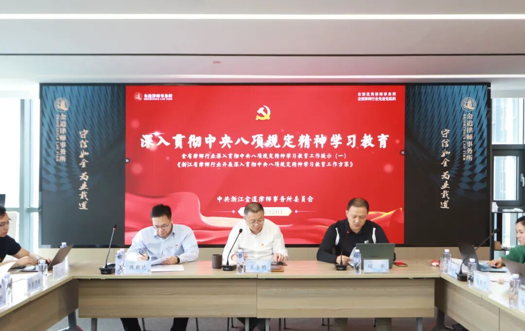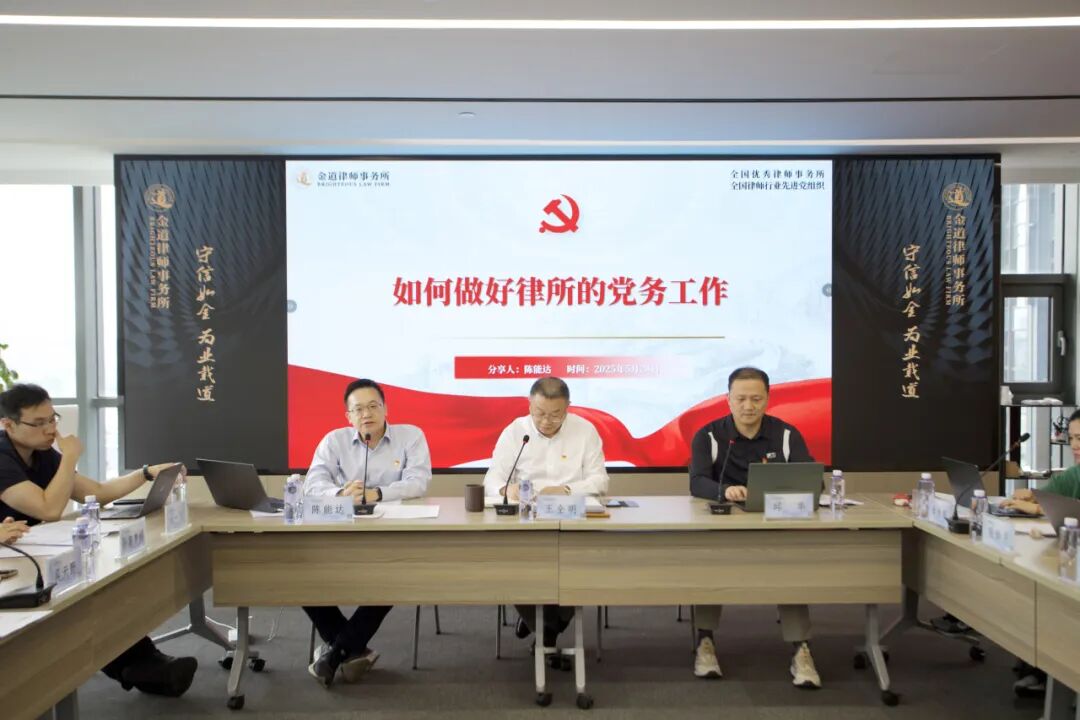 浙江金道律师事务所于2006年成立,同年设立金道党支部,2015年12月升格为党总支,2021年6月升格为党委,同年成立纪委、统一战线工作部。金道所坚持党建与所建并举,并以“两学一做”学习教育为契机,立足岗位,扎实做好各项创新创优工作。在上级党委的领导下,金道所先后获得“全国优秀律师事务所”“全国律师行业先进党组织”“浙江著名律师事务所”“浙江省服务中小企业十佳机构”“全市司法行政系统党建示范点”、杭州市政法系统“最强党支部”等荣誉,实现党建强、所建强。