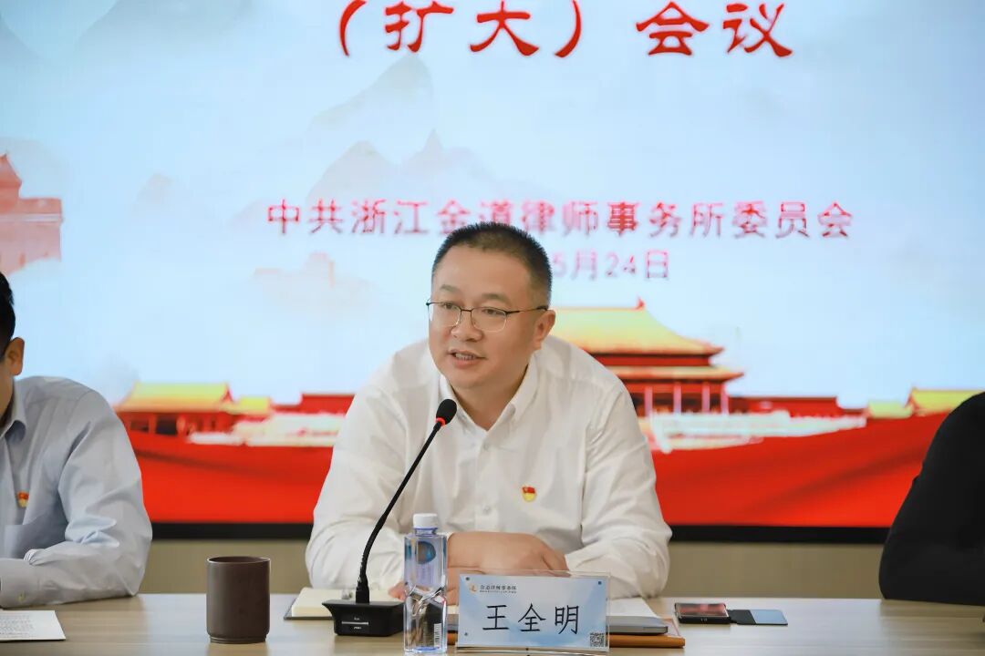 最后,党委书记王全明就今年的党建工作部署发表了重要指示。他着重提出,必须充分认识到党建工作的重要性,金道所的发展与党建工作紧密相依,党建不仅能够凝聚人心,更能为律所发展引领正确方向;要合理推进基础性工作,建立工作机制,新一届支委班子协同做好党务工作;支部党建活动应精益求精,着重打造特色党建品牌。此外,王全明书记还对党建工作提出指导性建议,涵盖强化党委与支部的统筹协调、坚守律师执业底线等多个方面,切实助力金道党建与律所事业在新征程中再创佳绩。