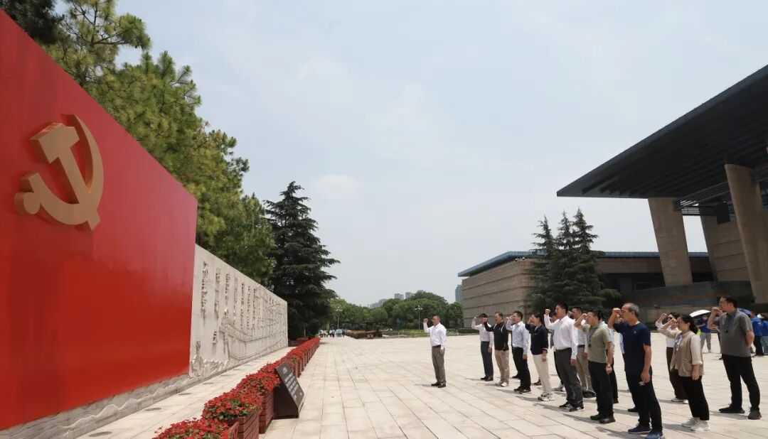 随后,纪念馆前,党员们面向党旗,在党委书记王全明的带领下重温入党誓词,用铿锵誓言诠释入党初心。