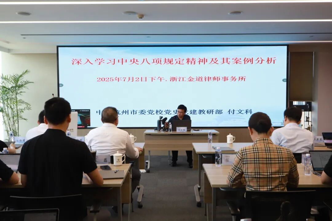 2025年7月2日下午,为庆祝中国共产党成立104周年,扎实开展深入贯彻中央八项规定精神学习教育,进一步巩固深化党纪学习教育成果,金道党委组织深入贯彻中央八项规定精神学习教育专题党课学习暨庆“七一”活动。本次活动有幸邀请到中共杭州市委党校党史党建教研部副主任、副教授付文科为全体党员作专题授课。金道所党委书记王全明,党委副书记兼组织委员陈能达,党委委员王晓辉、徐杨超等100余人线上线下共同参加本次活动。党委副书记兼组织委员陈能达担任主持。