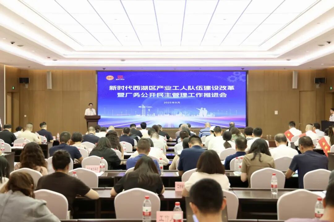 为全面加强高素养劳动者队伍建设,2025年9月29日下午,西湖区召开2025年新时代产业工人队伍建设改革暨厂务公开民主管理工作推进会。区委副书记、社工部部长、政法委书记陆志敏出席并讲话。区委常委、副区长俞晖,区人大常委会副主任、区总工会主席马定忠,区政协副主席缪凌蓉,各镇街、平台、部门分管负责人等参加。金道所党委书记、主任王全明受邀参加会议。