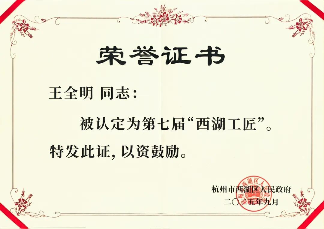 金道喜讯 | 王全明主任荣获“西湖工匠”称号