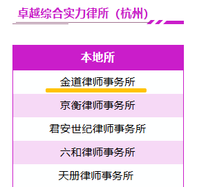 金道所曾于2021年荣获杭州地区“卓越综合实力律所”大奖,2022年起荣获浙江地区“卓越综合实力律所”大奖,充分展现了金道所多年来在浙江地区法律服务市场的深厚积淀与持续领先的行业地位。未来,金道所将持续深耕专业领域,不断优化服务品质,积极适应国家法治建设与经济发展的新形势、新要求,加强专业人才梯队建设与跨领域协作能力,致力于为客户提供更加前瞻、高效和全方位的法律解决方案。