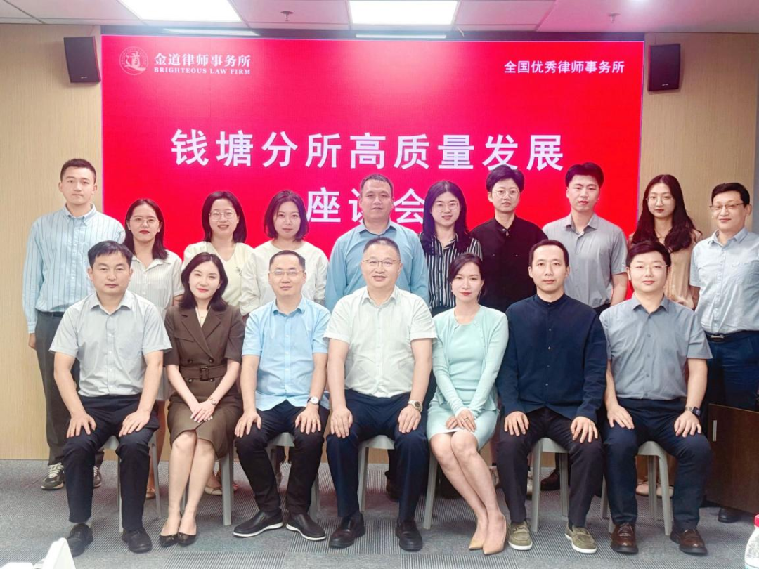2025年10月14日,钱塘分所高质量发展座谈会成功举办。金道所党委书记、主任王全明,管理合伙人江力,高级合伙人王韬,分所建设与对外合作委员会委员高文等,与金道杭州钱塘区分所主任陈思,副主任吕枫丽、潘炳祝以及律师代表一同展开座谈交流。会上,陈思律师对王全明主任一行的到来表示热烈欢迎,并就杭州钱塘区分所2025年度的人员架构、业务收入、品牌建设、专业化发展、表彰与荣誉等工作情况进行了详细汇报。