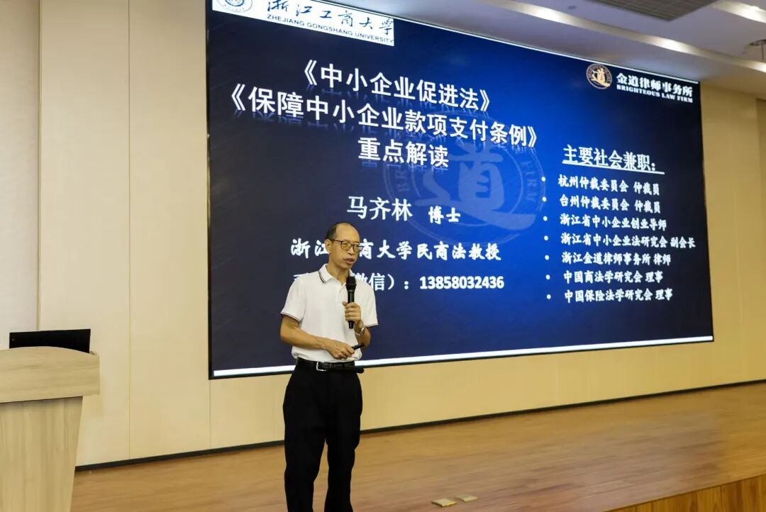 马齐林律师受邀为杭州市小升规培育企业作《中小企业促进法》和《保障中小企业款项支付条例》专题讲座 为了促进中小企业发展,解决中小企业款项支付行为、破解款项支付难题,2025年10月15日和16日,金道所兼职律师、浙江工商大学法学院马齐林教授受邀为杭州市小升规培育企业业务培训班作《<中小企业促进法>和<保障中小企业款项支付条例>重点解读》专题讲座。
