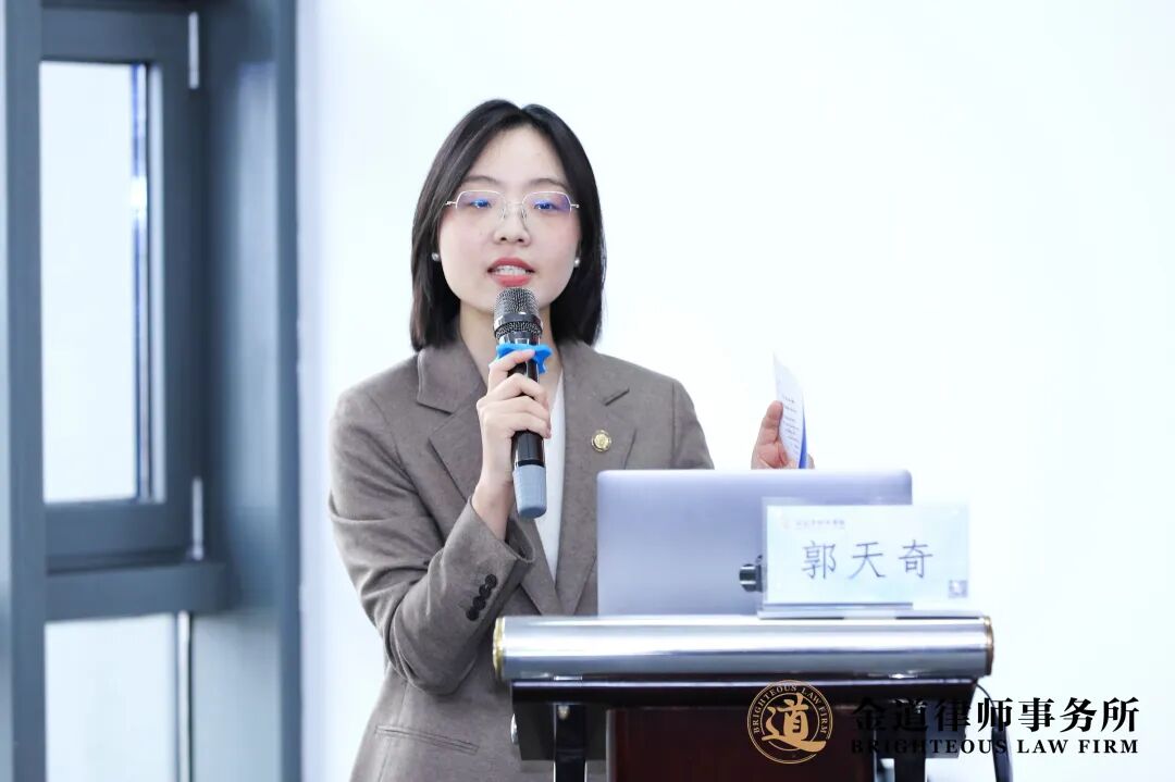 随后,本期中坚骨干律师研修班班长郭天奇代表全体学员,向律所领导致以最诚挚的谢意。在她眼中,学员皆是律所精挑的“中坚骨干”,平日里如高速运转的精密引擎,于繁杂事务中全力以赴。此次研修班,恰似一场及时雨,带来“系统升级”的契机。同时作为班长,她对学员们提出三个学习目标:从“单打独斗”到“团伙作战”;从“技能点满”到“格局打开”;从“骨干”到“脊梁”。她期望大家如海绵汲水般求知,似家人互助般温暖,遇见更卓越的自己。
