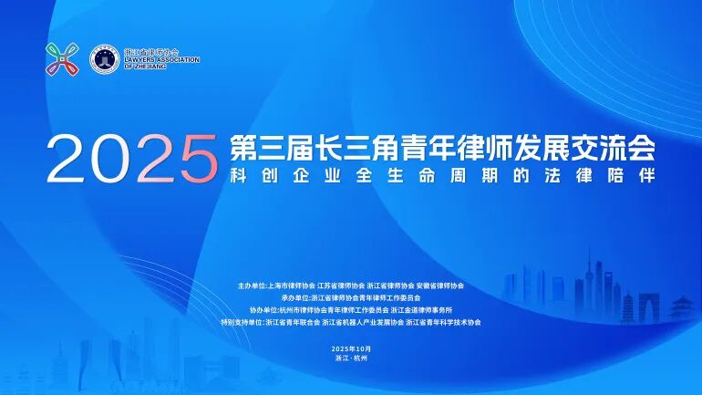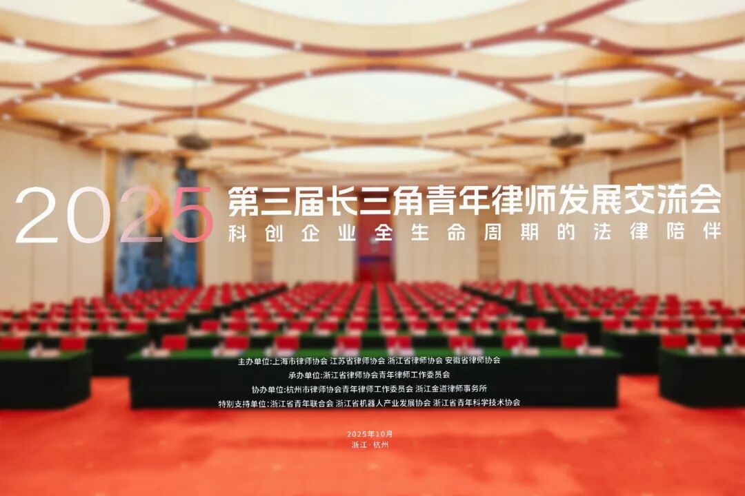 2025年10月26日至27日,由上海市律师协会、江苏省律师协会、浙江省律师协会、安徽省律师协会共同主办,浙江省律师协会青年律师工作委员会承办,杭州市律师协会青年律师工作委员会和浙江金道律师事务所协办的第三届长三角青年律师发展交流会在杭州举办。来自上海、江苏、浙江、安徽、陕西、云南、新疆等地近300名青年律师参加活动。