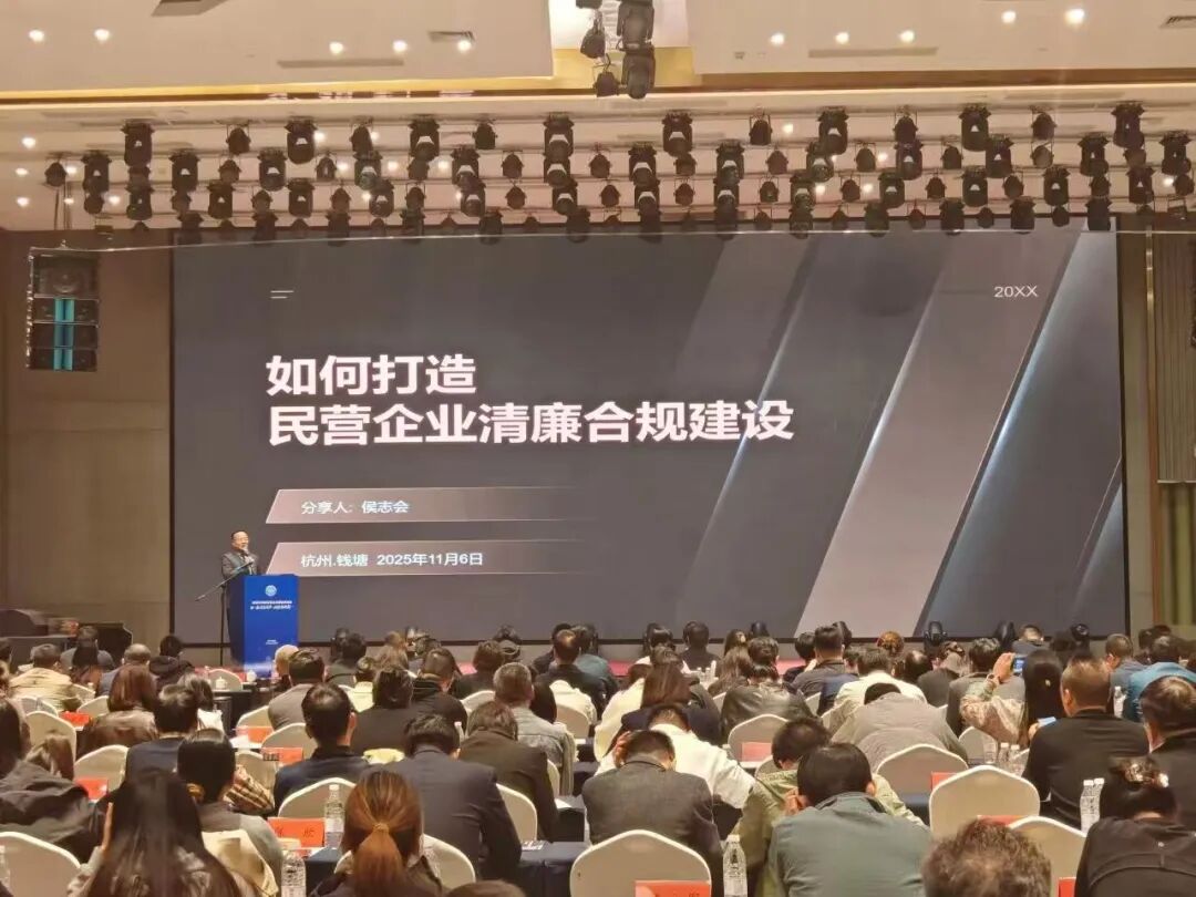 侯志会律师受邀参加钱塘区清廉民企建设推进会并作主题分享 为深入贯彻落实有关推进清廉民企建设要求,2025年11月6日,钱塘区召开清廉民企建设推进会,总结阶段成效、部署重点任务,进一步推动清廉思想、制度、文化融入民营企业发展全过程。钱塘区纪委副书记、区监委副主任金达,钱塘区委统战部副部长、区工商联党组书记沈建平出席并讲话。区纪委监委、区委统战部、区工商联等部门负责人,街道、平台及民营企业代表等200余人参加。金道所高级合伙人侯志会受邀参加本次活动。