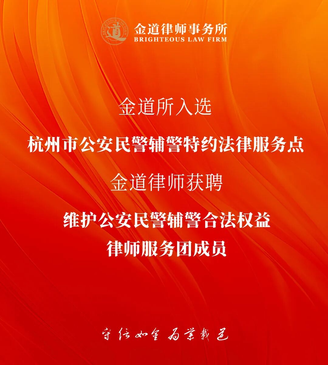 金道喜讯 | 金道所入选杭州市公安民警辅警特约法律服务点,金道律师获聘“维护公安民警辅警合法权益律师服务团”成员