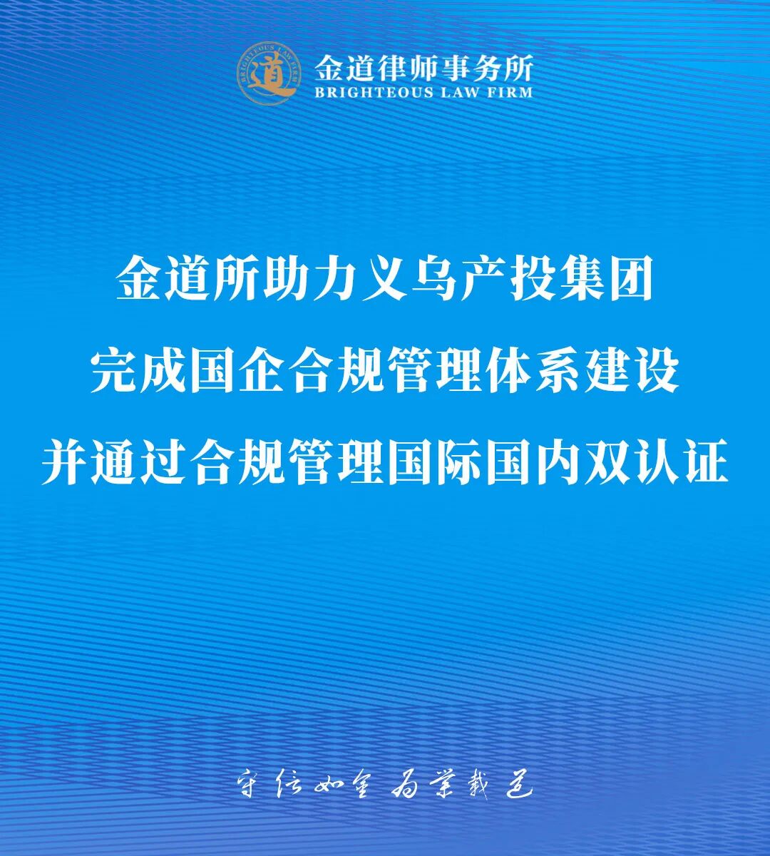 金道业绩 | 金道所助力义乌产投集团完成国企合规管理体系建设并通过合规管理国际国内双认证