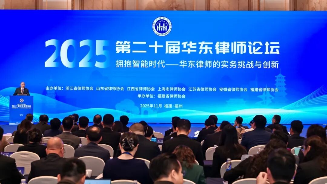 2025年11月22日至23日,第二十届华东律师论坛在福建省福州市举办。本次论坛以“拥抱智能时代——华东律师的实务挑战与创新”为主题,由浙江省律师协会、山东省律师协会、江西省律师协会、上海市律师协会、江苏省律师协会、安徽省律师协会、福建省律师协会联合主办,福建省律师协会承办,来自华东六省一市律师协会的会长、副会长、秘书长、副秘书长以及律师代表160余人参加论坛。金道所杨洁律师作为浙江省优秀论文获奖代表参加本届论坛。