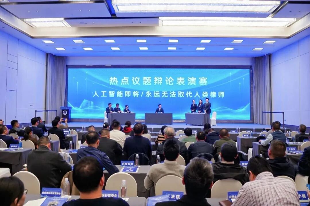 在“机遇·行业变革”篇章,来自西湖区各律所的六位优秀青年律师围绕“人工智能是否即将取代律师”为主题进行趣味辩论,将现场气氛推向高潮。方文韬律师作为正方二辩,以专业立论,尽显金道青年律师的思辨风采。