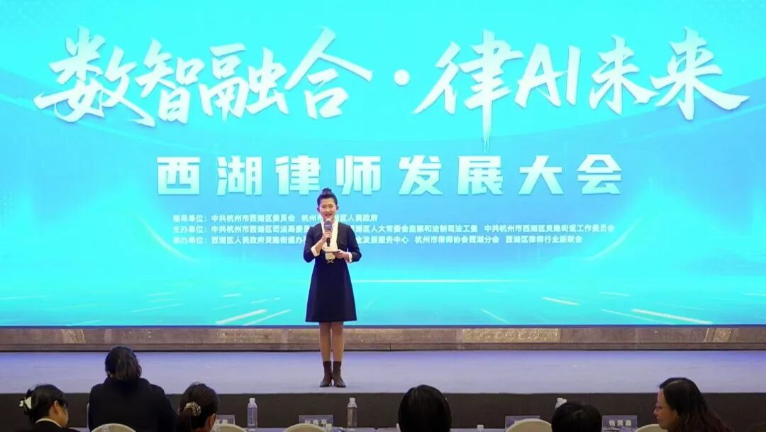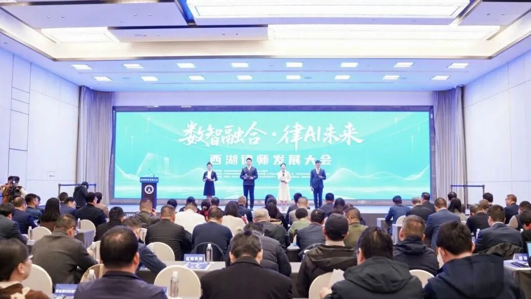 金道律师参加西湖律师发展大会,共探“律AI未来” 2025年11月21日下午,“数智融合·律AI未来”西湖律师发展大会在杭州黄龙法务集聚区隆重举行。本次大会由西湖区司法局党委、区人大常委会监察和法制司法工委、灵隐街道党工委联合主办,西湖区律师行业承办,汇聚了高校学者、律师代表和企业嘉宾。金道所王全明、崔海燕、郑梁、郭天奇、孙南梦頔、成一飞、方文韬等律师参加会议。本次会议由孙南梦頔律师担任主持。