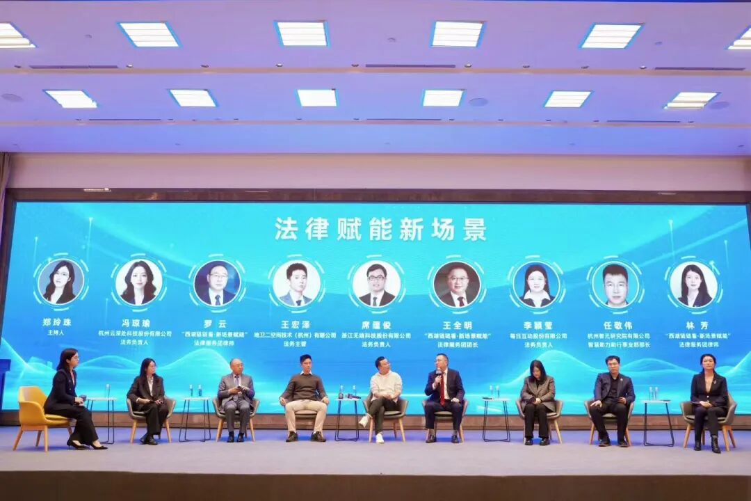 会上,“西湖链链看·新场景赋能”法律服务团在现场正式发布,由杭州市律师协会副会长、金道所党委书记、主任王全明担任总团长,金道所管理合伙人郑梁担任文创文旅服务团团长,并上台参与启动仪式。