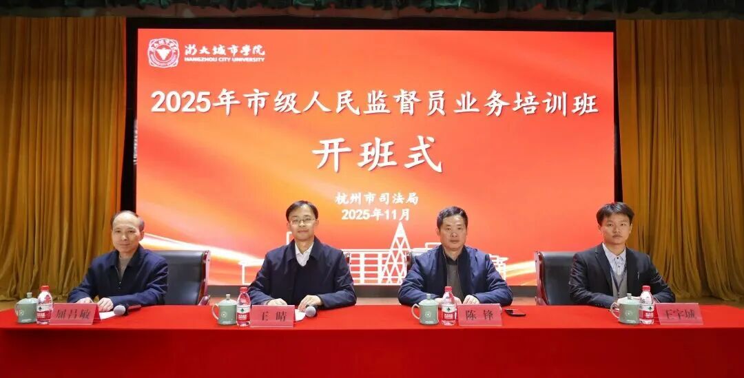 2025年11月27日下午,杭州市市级人民监督员业务培训班在浙大城市学院开班。杭州市司法局人民参与和促进法治处处长王晴、杭州市人民检察院案件管理办公室副主任屈吕敏和浙大城市学院继续教育学院副院长陈锋出席开班式。杭州市司法局和人民检察院相关人员以及人民监督员等共170余人参加培训。