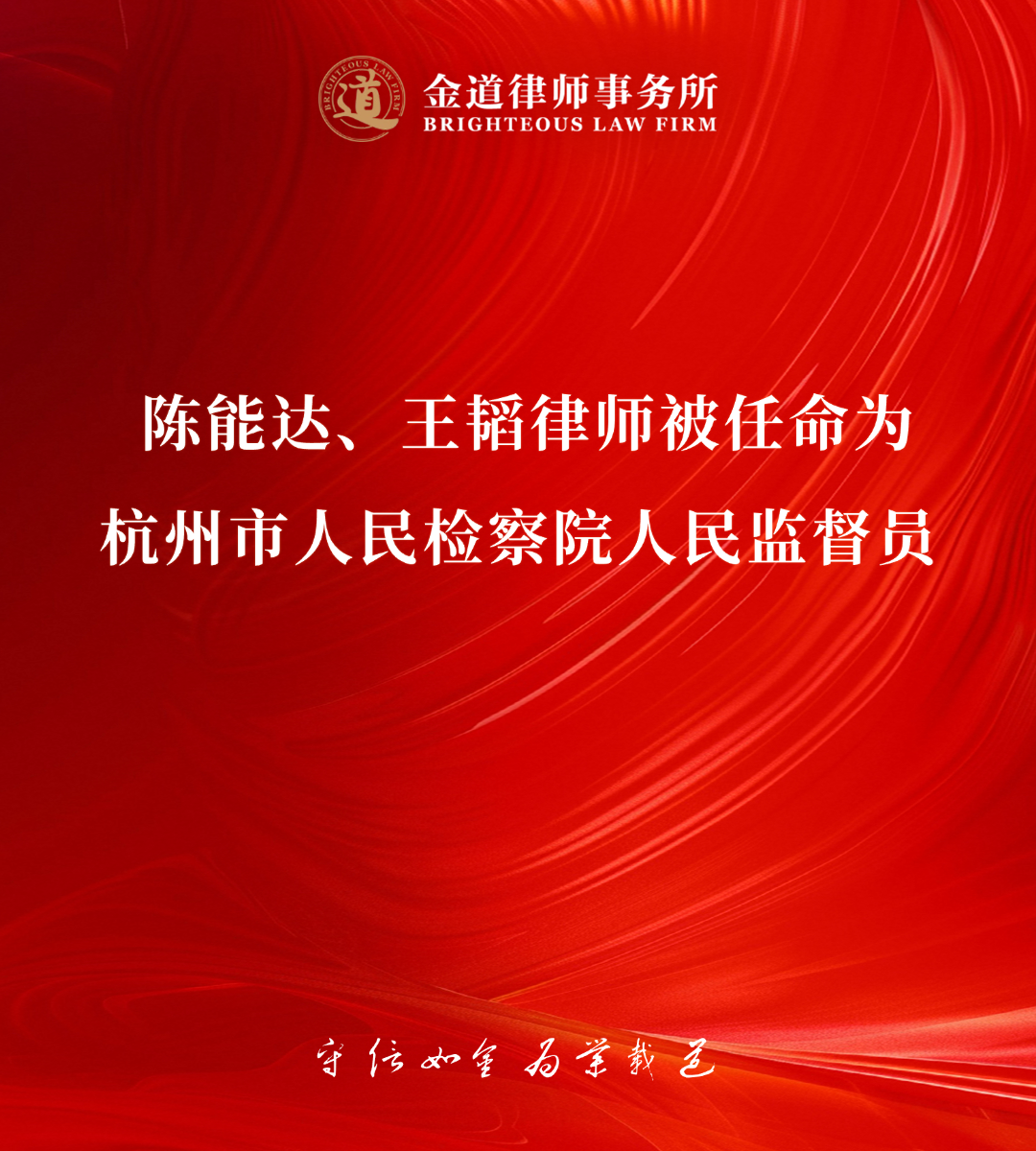 金道喜讯 | 陈能达、王韬律师被任命为杭州市人民检察院人民监督员