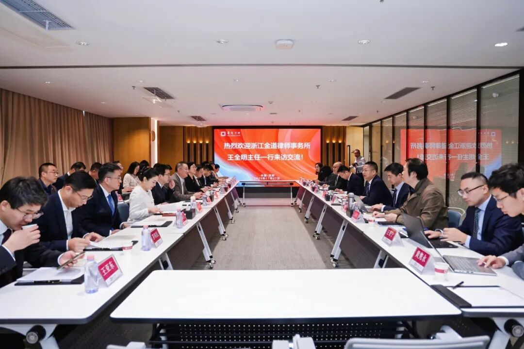 第二站,来到华商律师事务所。华商律师事务所是广东省规模最大的律师事务所,全国拥有律师4000余名,分支机构70余家。华商首席合伙人、主任高树,执行合伙人、合规院院长郭鹏,执行合伙人、全国涉外委主任、港澳律师执业中心主任齐梦林,执行合伙人郭峻珲等人一起参与接待,并进行座谈。 座谈中,华商首席合伙人、主任高树高屋建瓴,结合自身律所管理32年经验,围绕律所发展,系统阐述了华商“讲政治、重专业、比奉献”的核心价值观,“引人才、建团队、强专业、拓市场、增创收”提升核心竞争力的发展策略,并提出发展总部经济的战略思维。 随后,双方围绕律所管理、运营机制、区域协同、业务发展等核心议题展开深度交流,共同探讨大湾区与长三角法律服务跨区域协同新路径