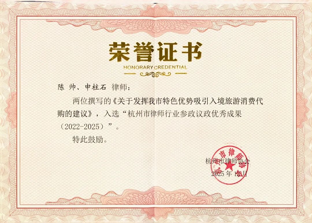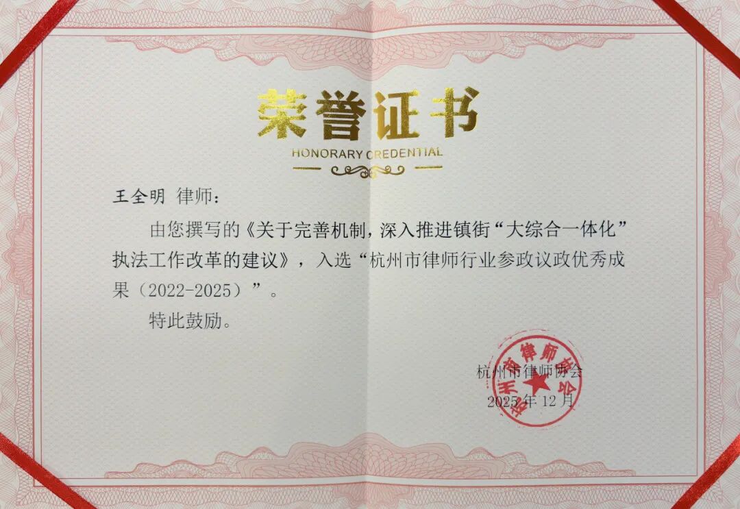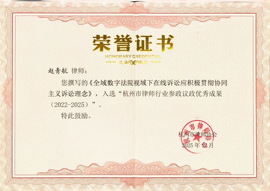 金道喜讯 | 金道多位律师参政议政成果获评杭州市律师行业参政议政优秀成果(2022-2025)