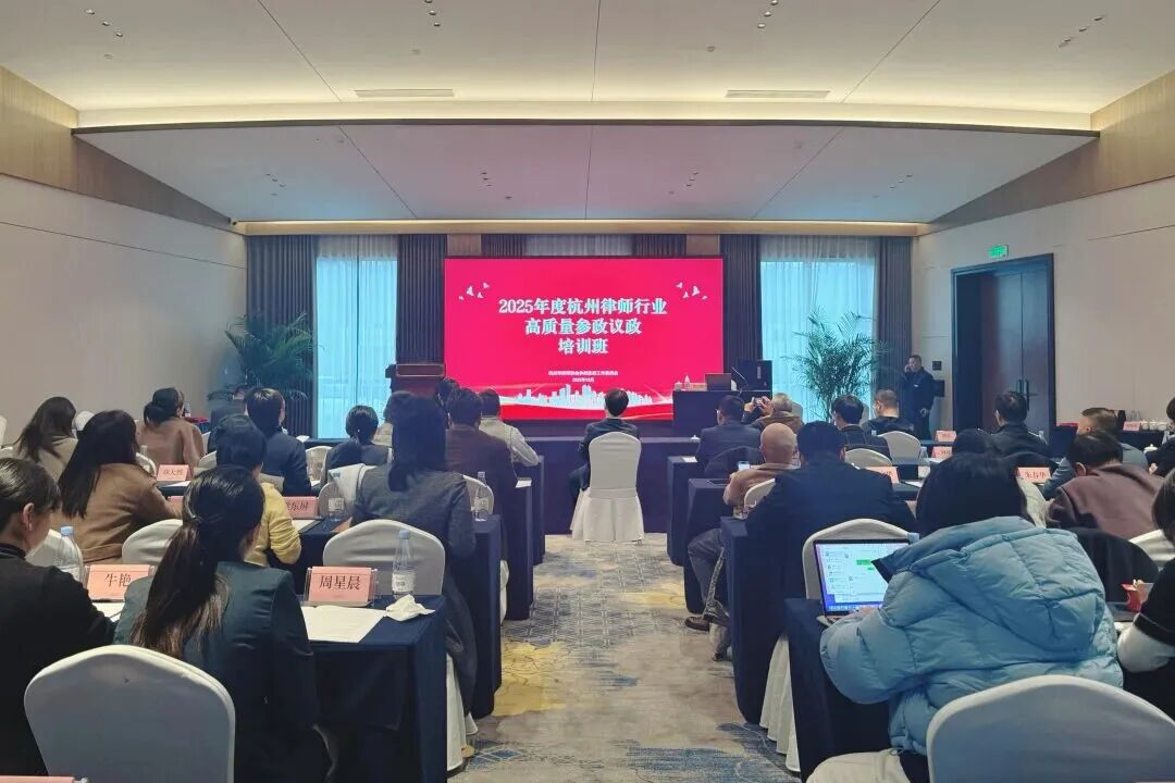 2025年12月12日至13日,2025年度杭州律师行业高质量参政议政培训班在临安成功举办。市律协参政议政委委员、全市律师行业各级“两代表一委员”律师、民主党派律师等80余人参加培训。中国致公党党员、金道所律师钟云帆和民建会员、金道所顾问陈帅参加会议。