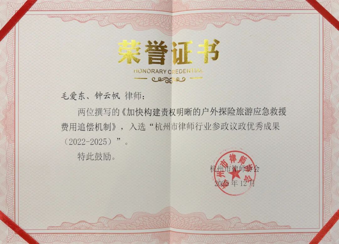 《加快构建责权明晰的户外探险旅游应急救援费用追偿机制》——中国致公党党员、金道所律师钟云帆