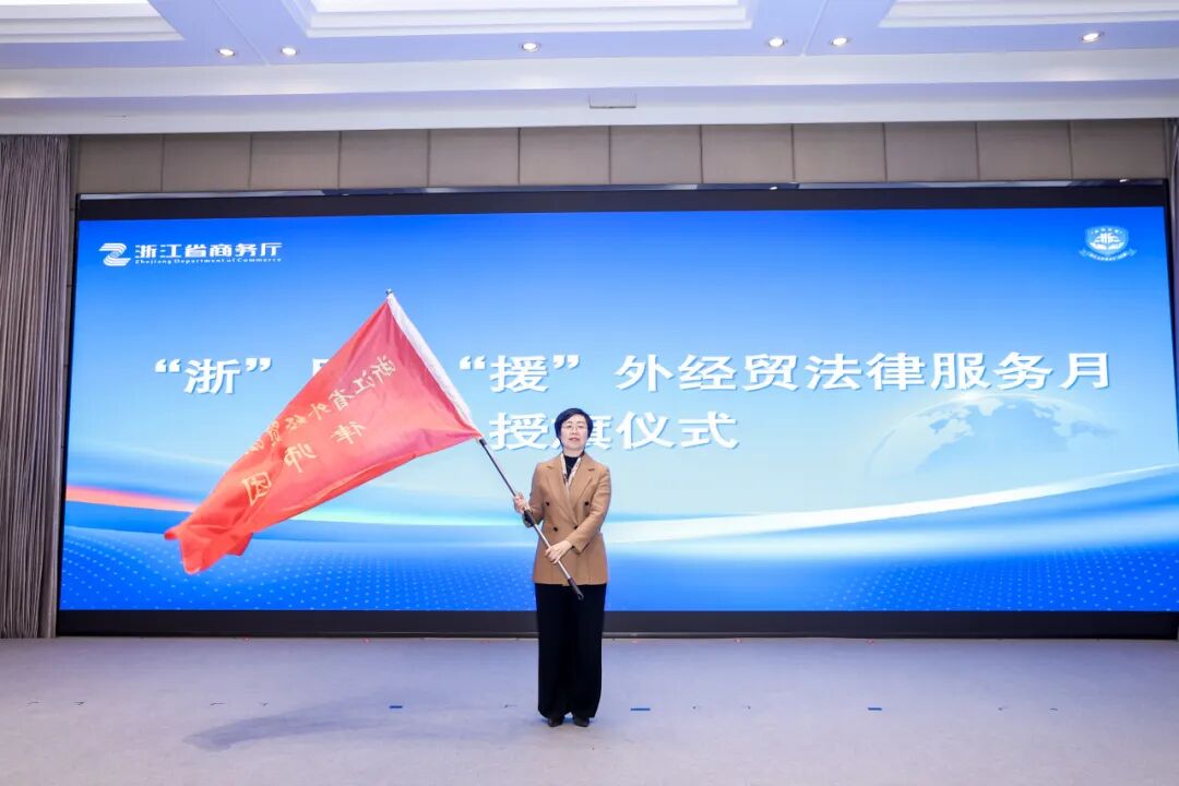 作为深耕涉外法律服务17载的品牌活动,“浙”里有“援”从最初的贸易救济应对,成为如今涵盖涉外知识产权、出口管制、跨境投资、合规建设的全方位“涉外法律服务金名片”。活动现场,省商务厅党组成员方晓给省外经贸法律服务律师团团长崔海燕律师授旗。崔海燕律师接过沉甸甸的授旗并作表态发言,她表示,律师团将不忘初心,始终与外经贸企业一起,聚焦清洁供应链、欧盟碳关税、知识产权、数据合规等热点难点,联合境外机构提供一站式法律服务,助力企业将合规建设融入“走出去”全过程。