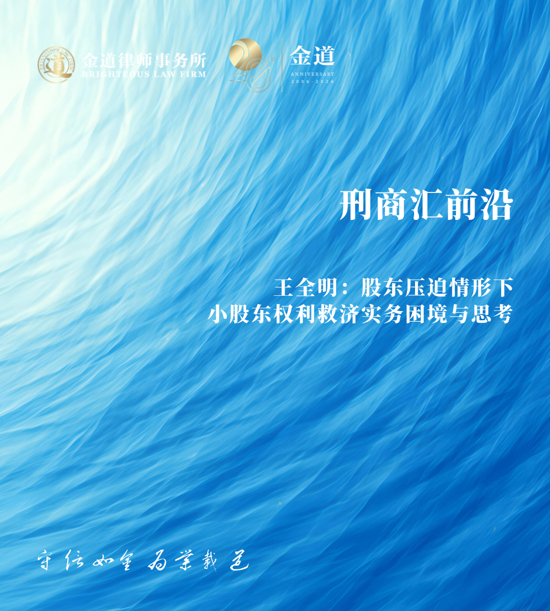 刑商汇前沿 | 王全明:股东压迫情形下小股东权利救济实务困境与思考